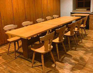 Für unseren Gruppenraum im Dorfstadel konnten wir die Tische und Stühle aus dem ehemaligen Gasthof Adler übernehmen.