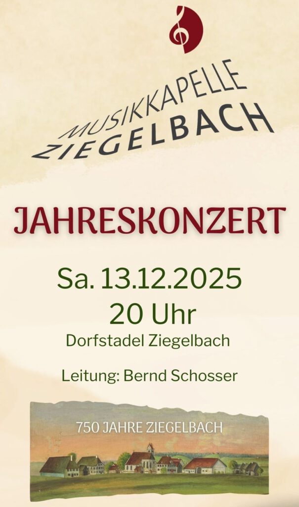 Die Musikkapelle Ziegelbach lädt alle Musikbegeisterten und Freunde aus Nah und Fern zum diesjährigen Jahreskonzert ein.